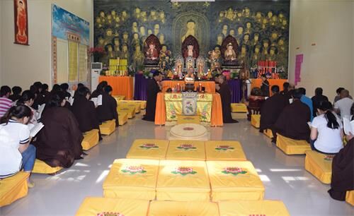 下午13:30至17:30,进行三时系念法会第二时、第三时活动。其间功德主在往生堂前祭拜,法师主法超荐往生堂亡灵蒙佛接引,业障消除,得生净土。